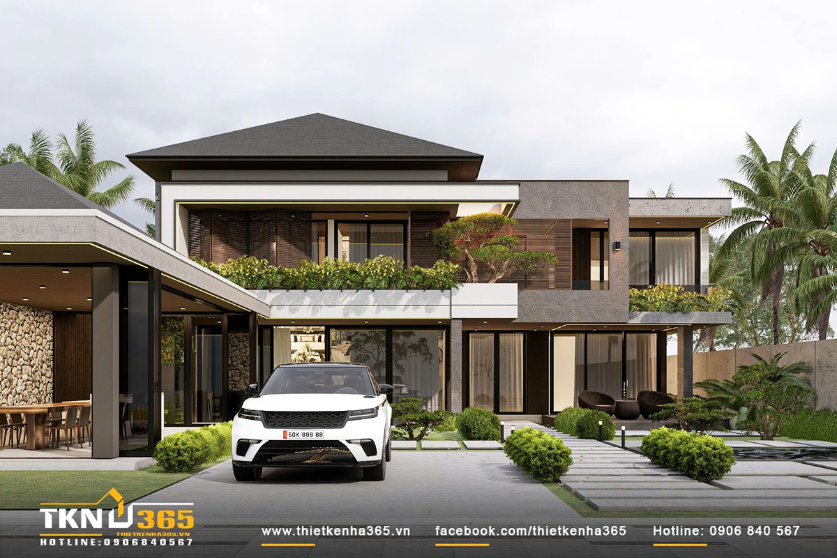Biệt thự 2 tầng mái Nhật hiện đại ưu tiên sự kết nối với thiên nhiên