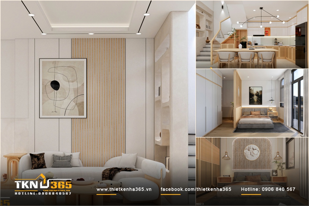 Với đề bài gia chủ đưa ra, Kiến trúc sư của Thiết Kế Nhà 365 đã đề xuất lựa chọn phong cách hiện đại, tận dụng tối đa diện tích và ánh sáng tự nhiên để mang lại cảm giác thông thoáng, thoải mái. Đặc biệt, cầu thang lệch tầng được áp dụng để tạo điểm nhấn thẩm mỹ và tối ưu hóa không gian giữa các tầng, kết nối nhưng không làm mất đi sự riêng tư.